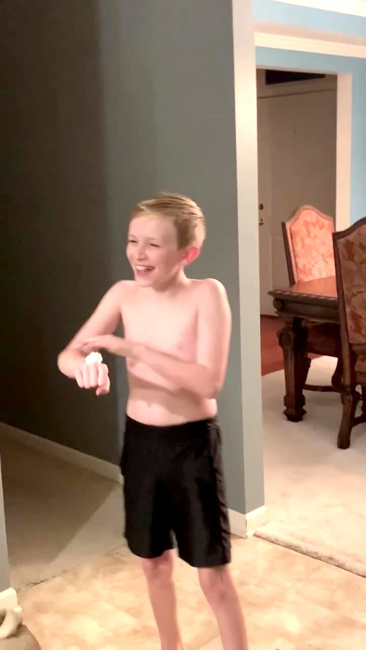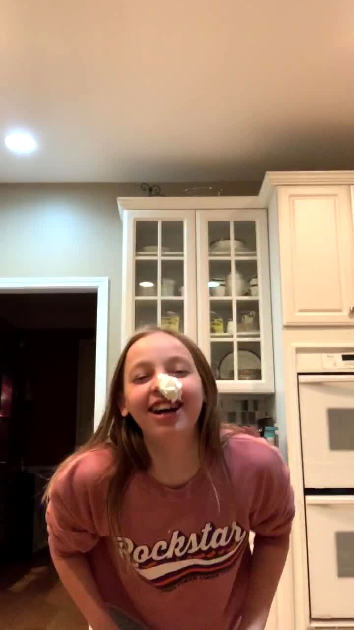 A young girl does the whipped cream trick and calls it her secret talent, but it hits her nose and then her dog jumps up and bites the cream off.