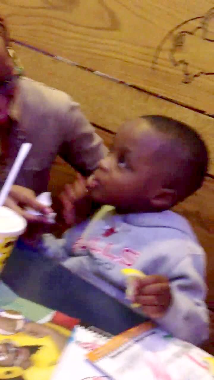 A tot boy tells his mother he wants tomato juice that she holds at home. She asks him if he is sure and the boy reassures her, but then gasps and says he does not like it when he tries it.