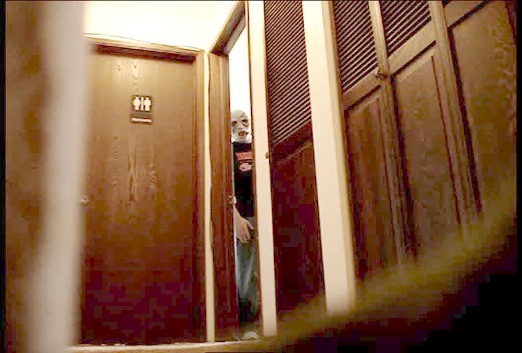 A man in a wolf mask hides behind a door at home and jumps out to scare a tot boy, who immediately smacks him in the face. practical joke fail