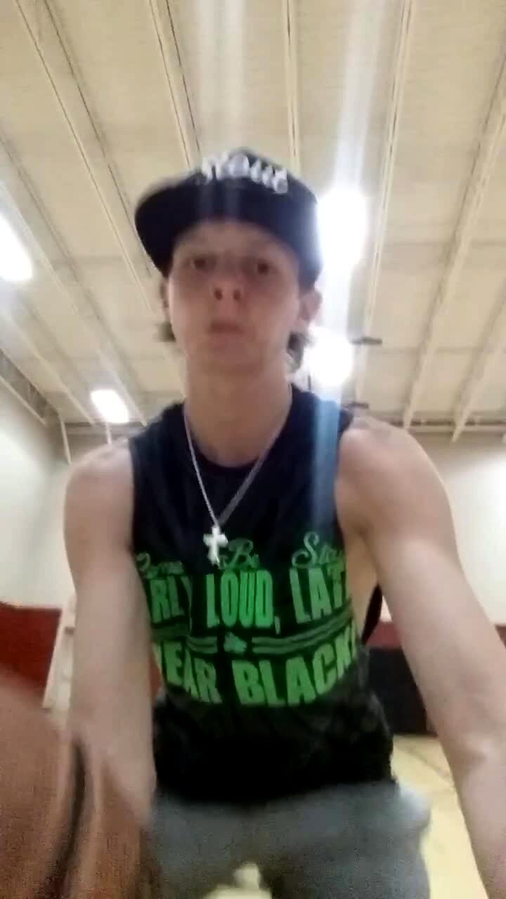 A teen throws basketball behind him while he holds a camera/phone and makes it. AA: Basketball Trick Shots