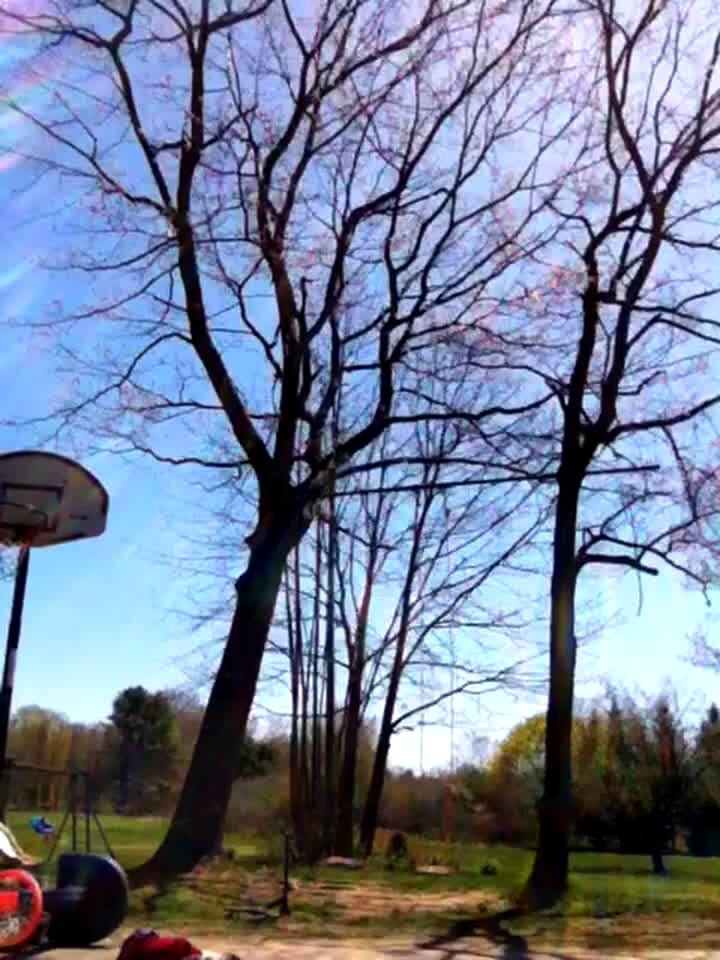 Teen boy shoots a basketball from a hill and hits the camera. Lens hit.