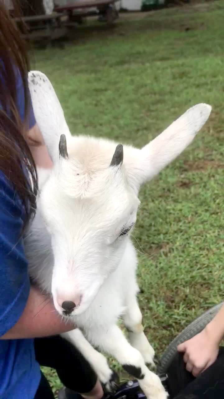 Baby goat screams when it is picked up. Sounds like a human scream.