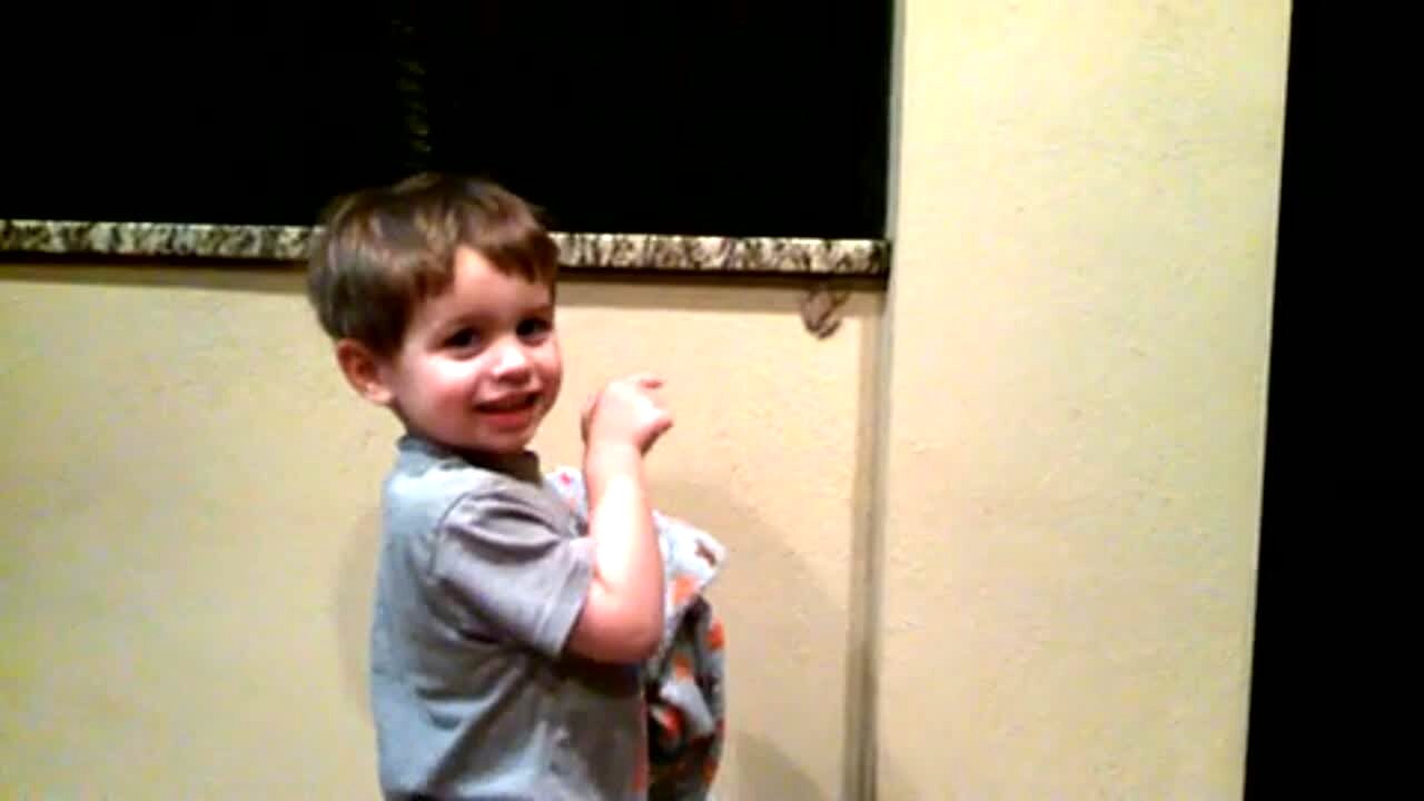 "Frog In Your Throat" Baby boy picks up tiny frog from carpet, tries to eat it. Mom has to pull frog out, she squeezes boy's cheeks together to force frog out. Mom drops camera, but you still hear her talking. Indoors, gross