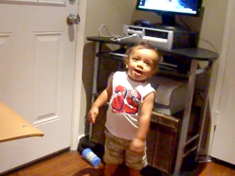A video montage of a tot boy who asks his father "Can I have some?" as he looks at his food around the house.