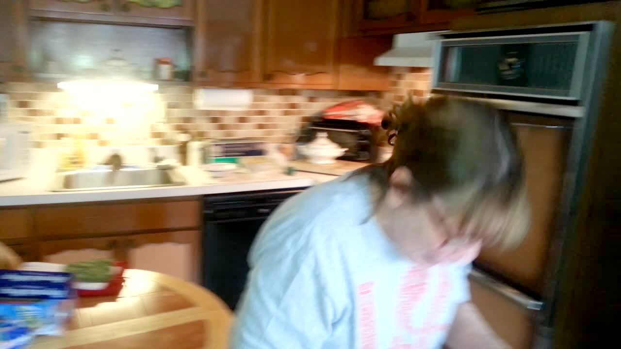 A woman tells her parents she's pregnant. Her mom screams and runs around. She falls to the ground screaming "Oh my god!" repeatedly. Same clip as 726711. Use this one.