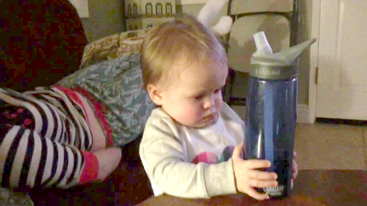 A young girl tells her dad that her brother went potty. When the man and his daughter walk into the bathroom, they see that the boy fell into the toilet.