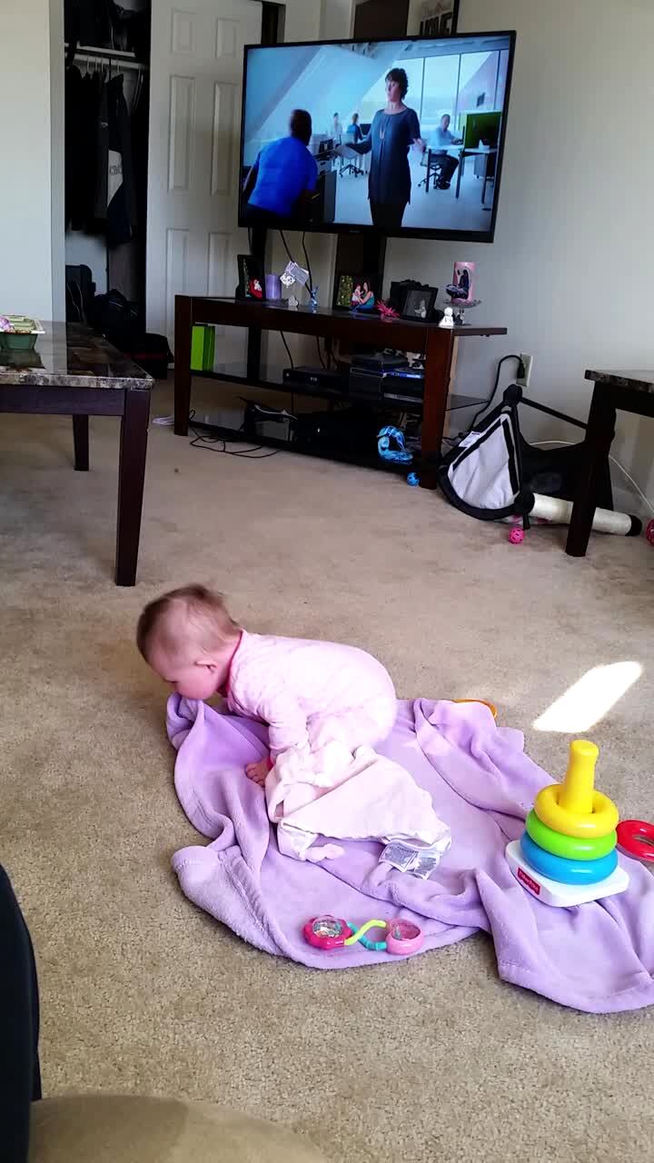 A girl swings outdoors while her older sisters play on a fake horse that they wouldn't let her play on. Their dad holds up a tot boy and says he's going to have him ride the horse "Lone Ranger Style" before he carries the boy to the horse but trips and falls over the horse, causing the boy to hit his head on the horse.