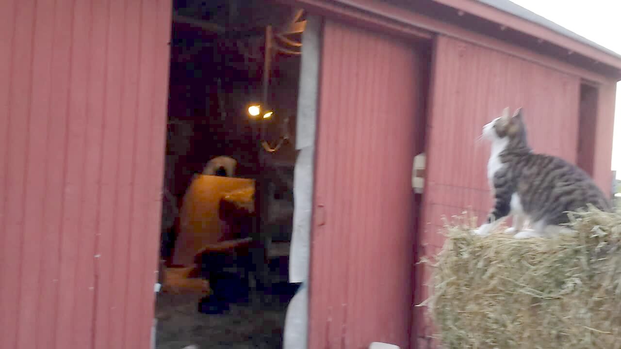 A dog shakes itself dry in slow motion. The dog's ears and jowls flap.