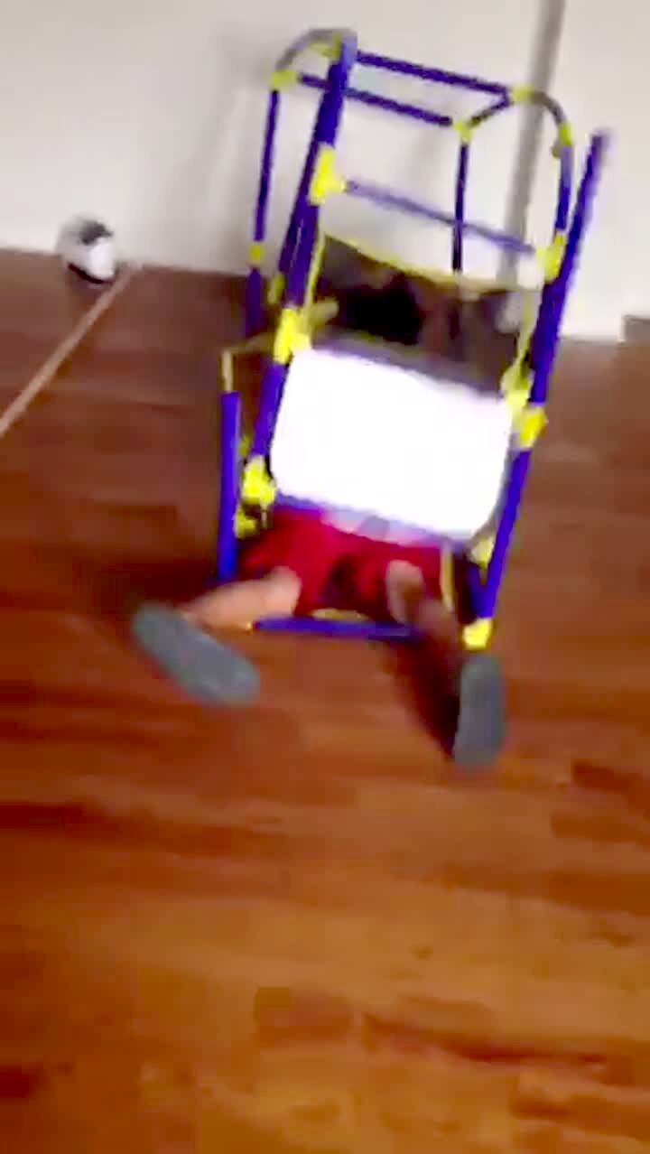 A pug dog jumps for a treat repeatedly in slow motion indoors.