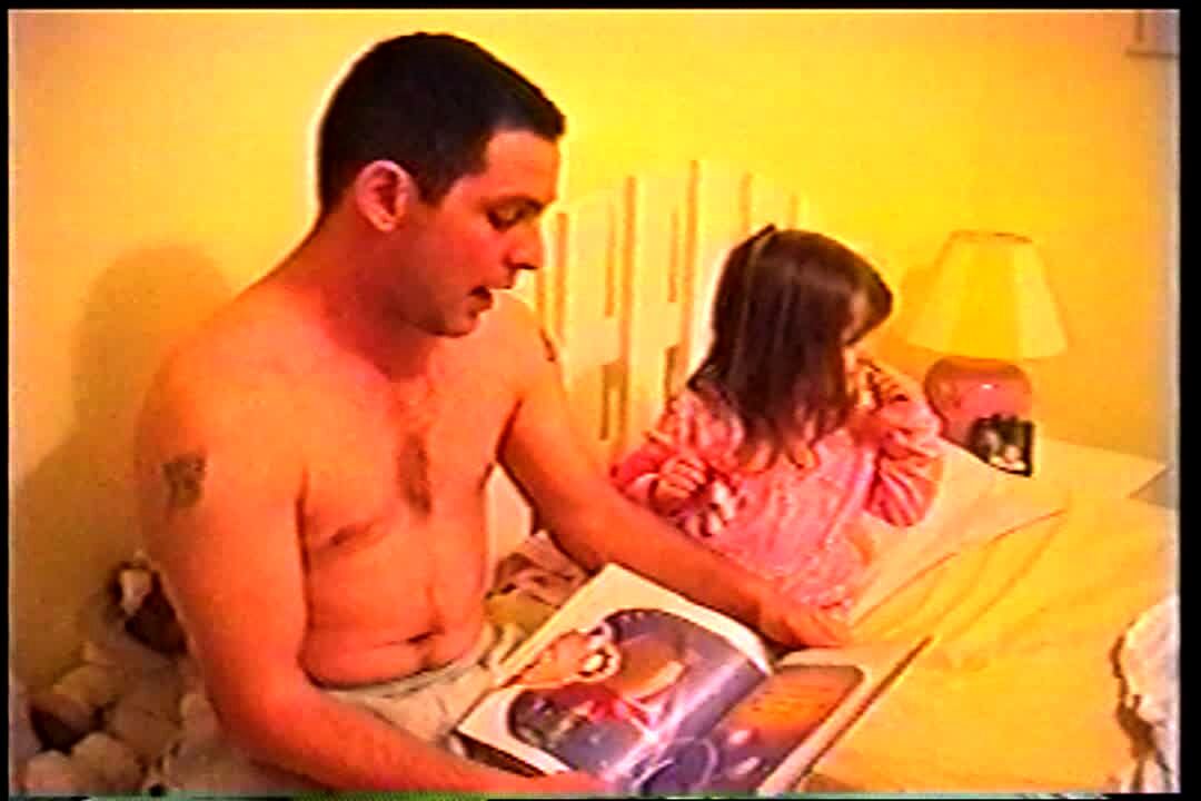 Tot girl picks her nose while dad reads her a bedtime story. Long string of snot comes out of her nose & dad has funny reaction. Short tail. Gross.