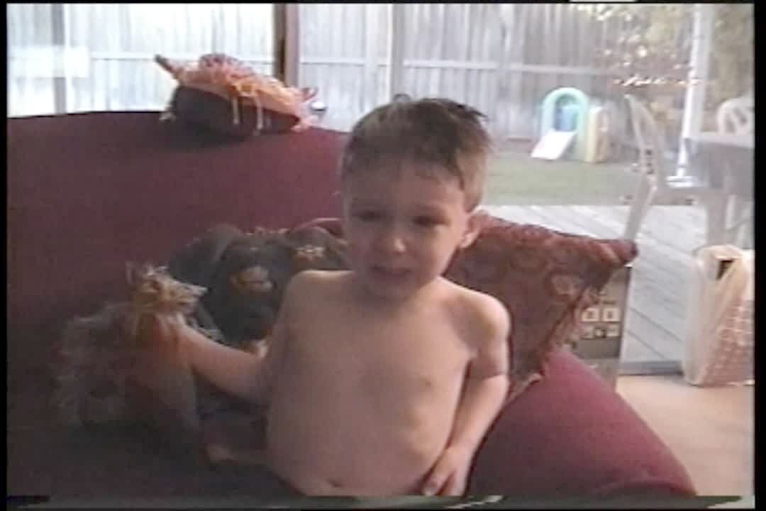 Boy cries when AFV isn't on TV. He uses a blanket to wipe his nose.