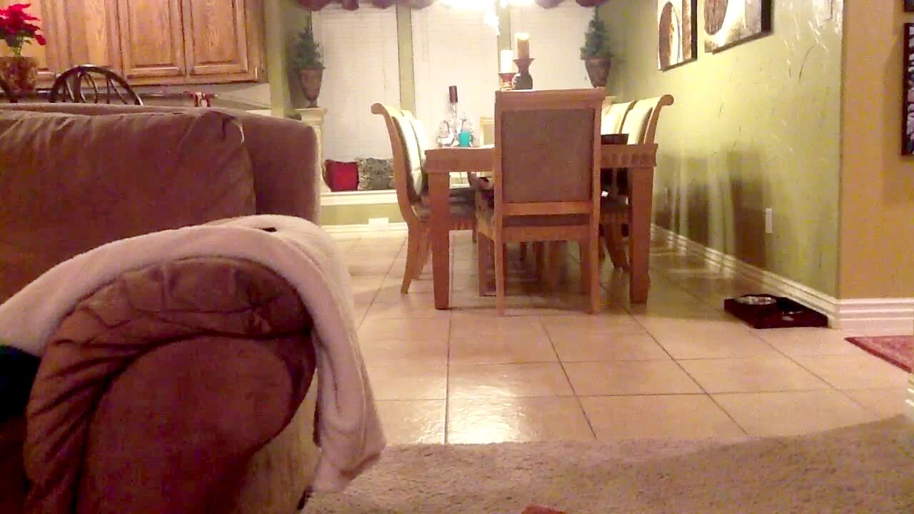 "Cold-Blooded Canine" Big dog opens refrigerator door & takes out food, then pulls out an entire shelf, leaving the fridge almost empty. Destroys fridge. Hidden camera. Blurry camera. Long for edit. Needs pull ups
