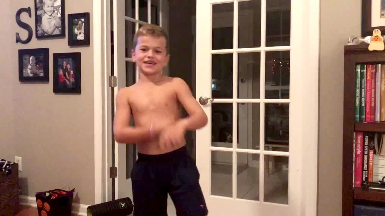 A puppy dog swims in water outdoors when a teen boy picks him up and he continues to paddle with his paws. Vine/Instagram.