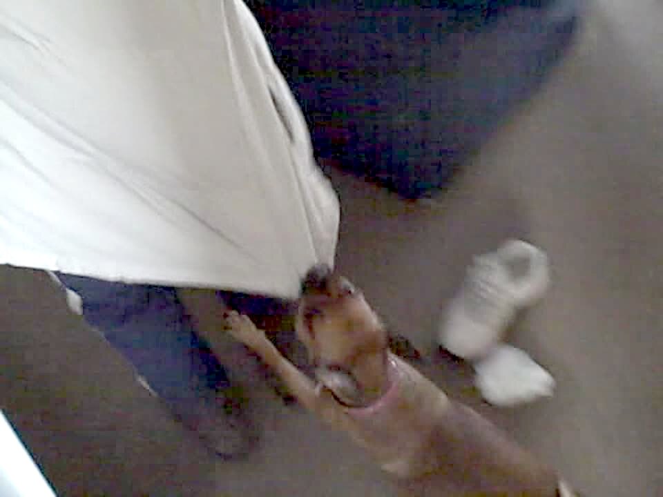 Teen boy pins dog's toy to a tree, the dog jumps up to try and get it. Dog pulls boy's shorts down.