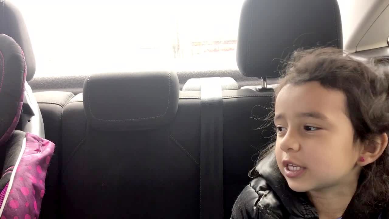 A young girl repeatedly calls a bag of Goldfish "cookies" and her tot brother gets upset and corrects her. In the back seat of a car. Cracker