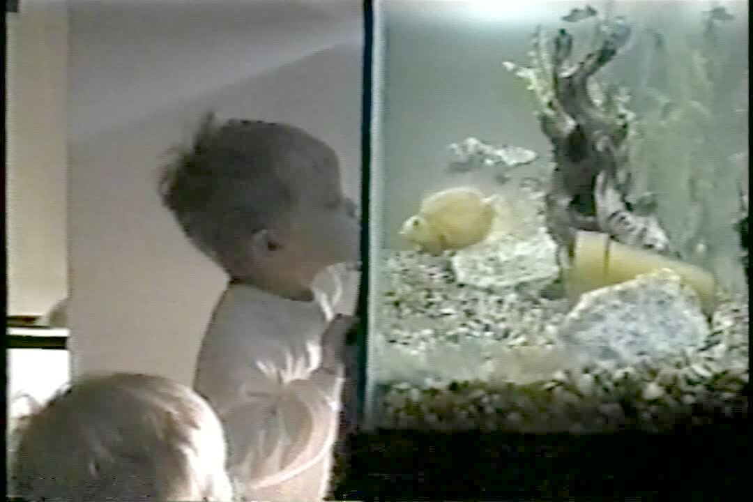 As a family prepares christen their fish tank for the first time a tot boy drops his dads iPhone into the tank.