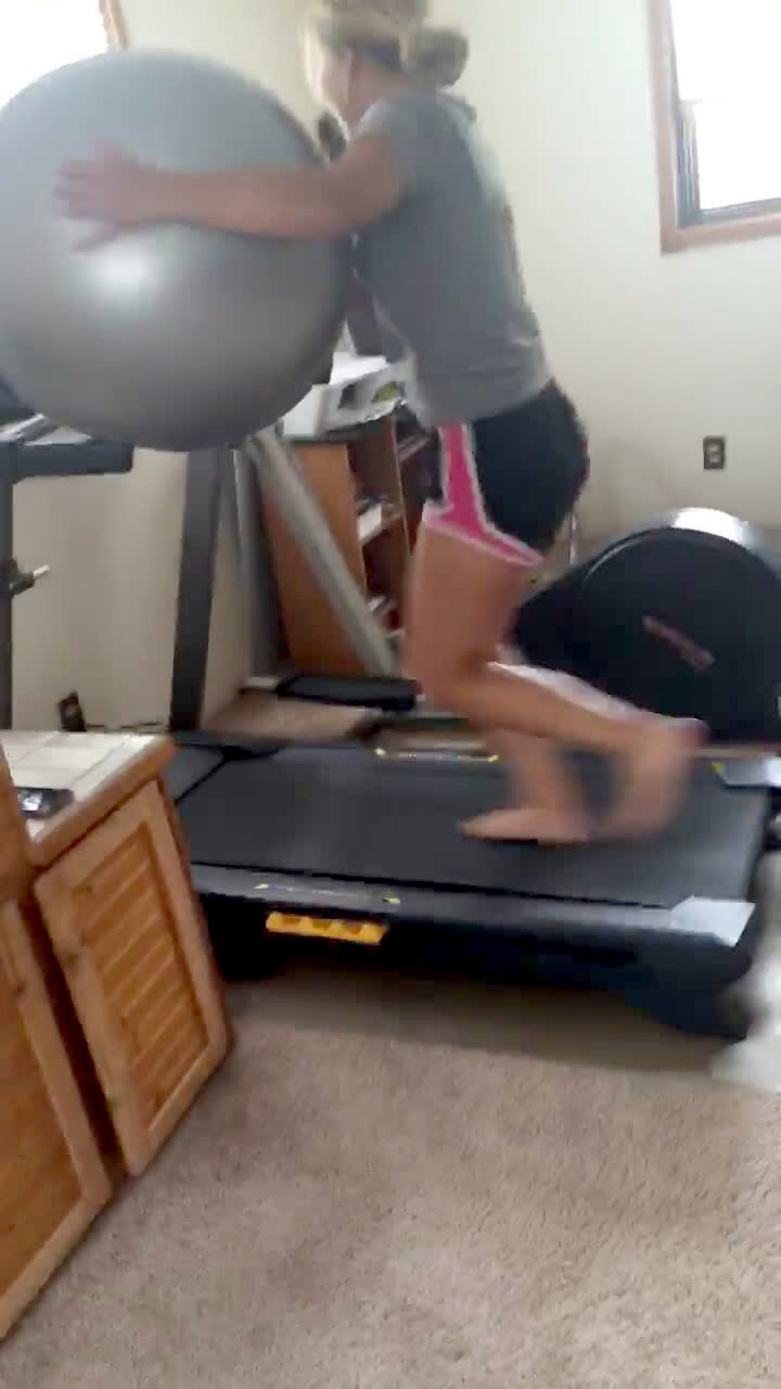 "Webcam Dance Jam" A woman dances to a work out video in her underwear as her son records her on a computer without her knowing indoors. Exercise. Mom.