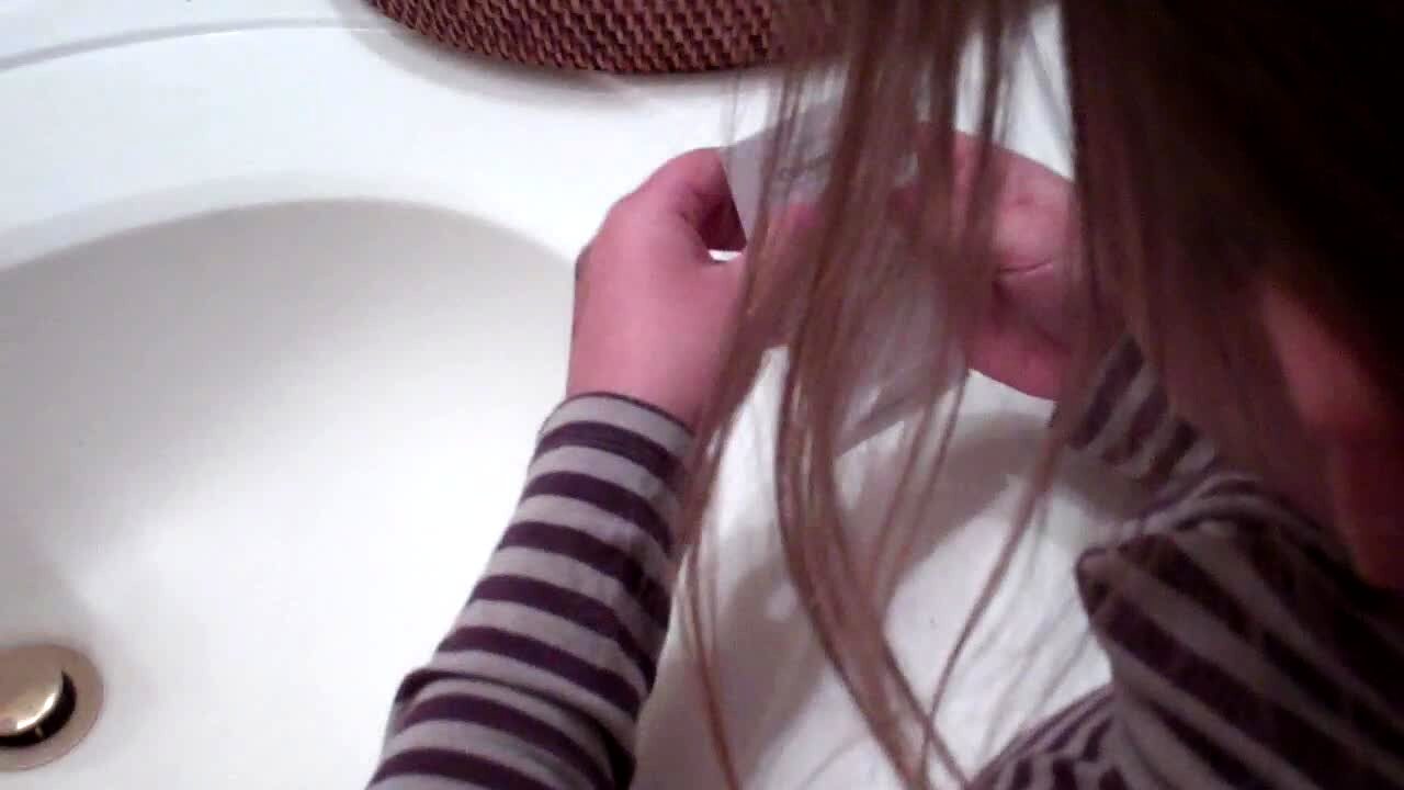 A girl shows that she just lost her first tooth indoors and when she takes it out of an envelop, it nearly falls down the bathroom sink drain, but her dad catches it.