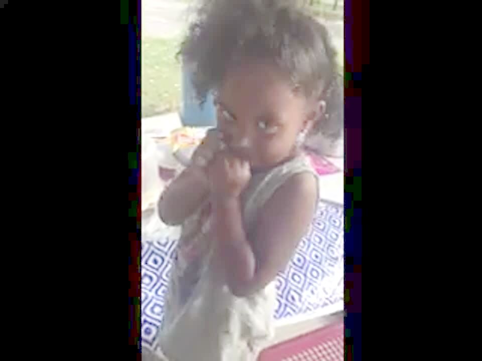 A man does the whipped cream challenge, and then a young boy does it and catches it in his hand. A young girl tries next, but she flings it up and it lands on the man's head.