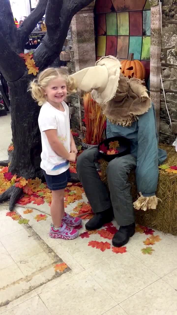 A dog bites his tail and chases it in circles around a boy as the boy struggles to stay standing.