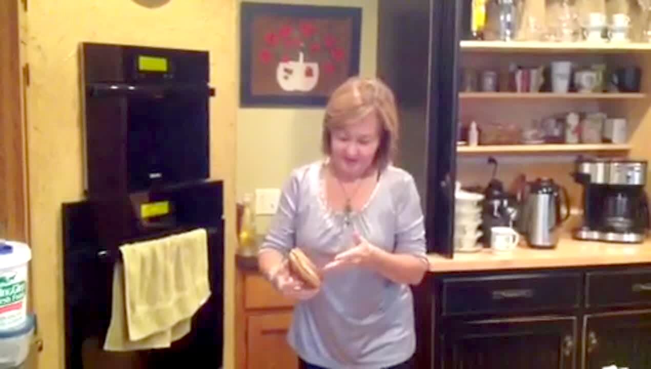 A woman finds a bun in her oven and asks if that's what her son got for her. She says "Bun in the oven" repeatedly before she realizes what it means and her family cheers because her son and daughter-in-law are pregnant.