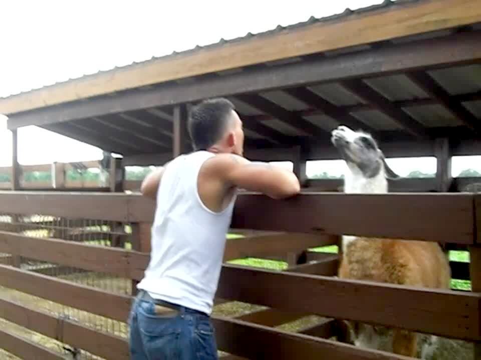 "Lama Loogie" Llama eats poop and spits in woman's face twice.