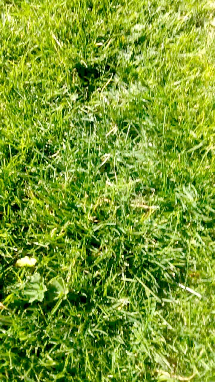 A young girl does a series of handsprings in the yard and crashes into a car parked in the driveway and falls down.