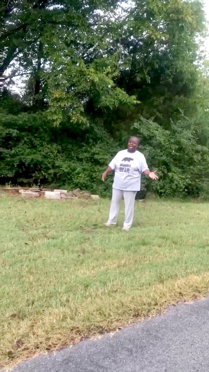 A woman tries to do a cartwheel to celebrate her kids in school but she fails.
