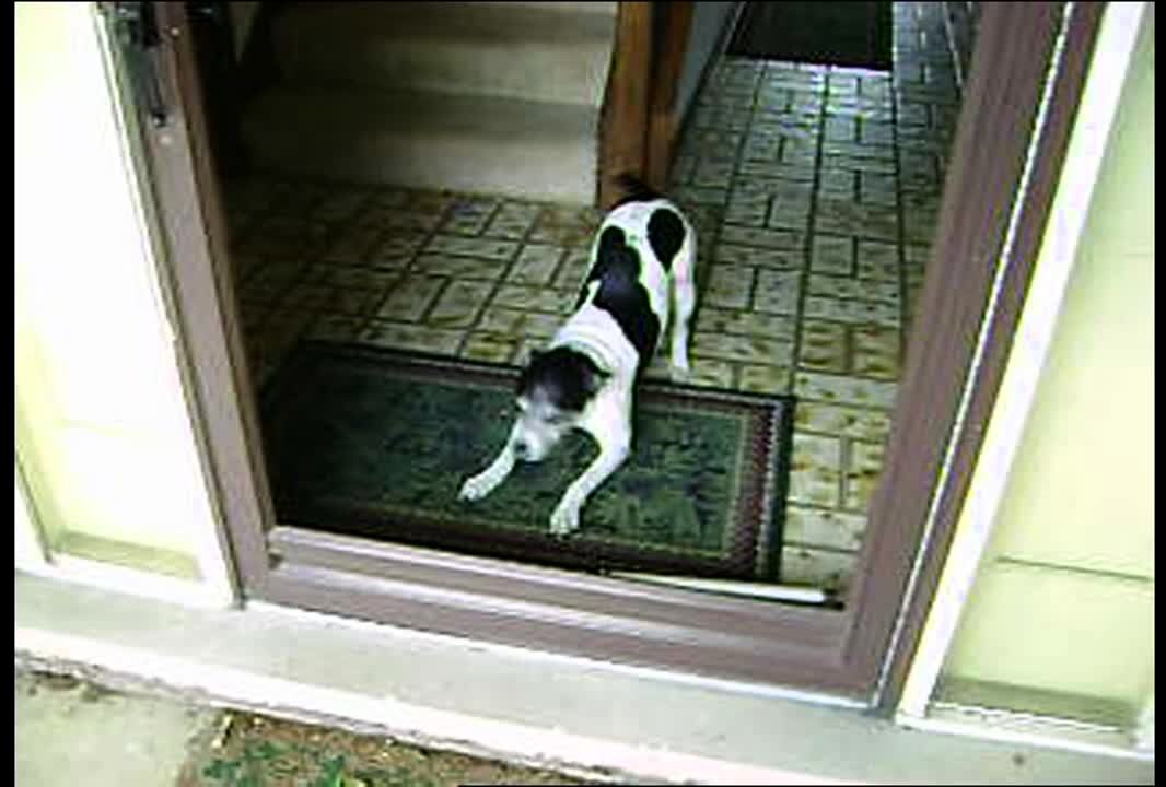 Dog sratches at open door but won't go out as family calls him