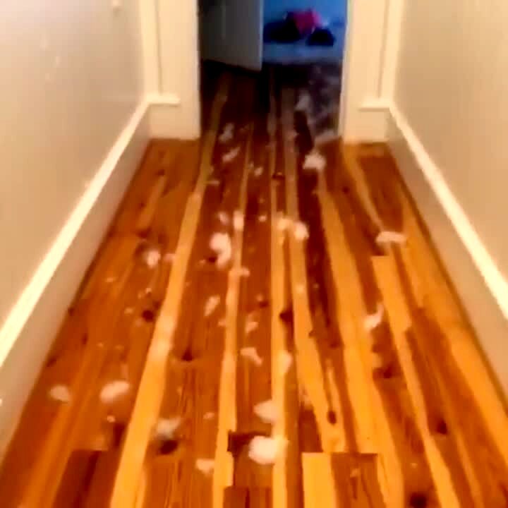 A mom follows a trail of soap bubbles through a house and into a bathroom that is covered in bubble bath soap as two young girls play in a bathtub. The mom says it is a disaster and the girls laugh.