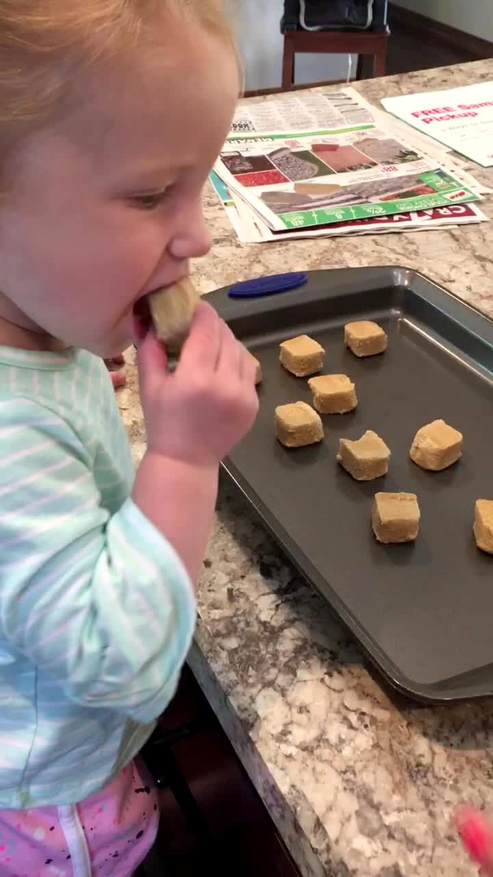 Boy crushes a Goldfish cracker in between his shoulder blades / bones while brother watches. Boy does it twice, 2nd try is better.