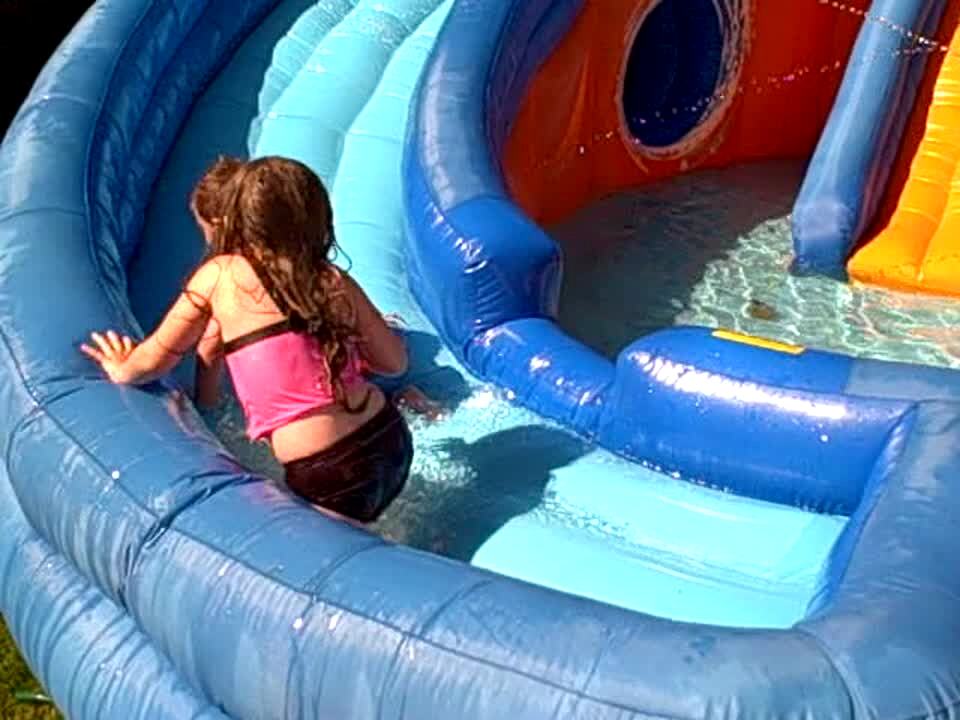 Teen girl picks up tot girl and spins her around in the living room. Another little girl walks up and gets kicked in the face.