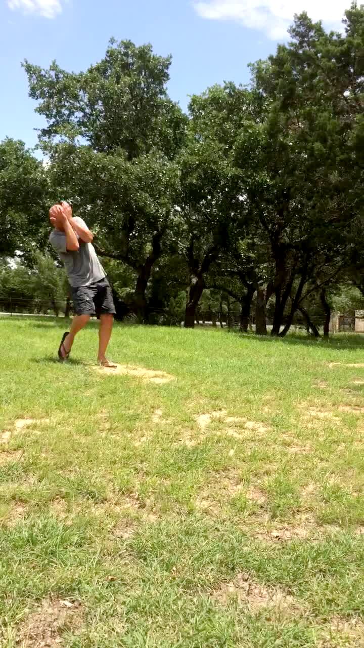 Two young men wear shock collars outdoors and run past an invisible fence. One of them yells in pain while the other falls to the ground from the shock.