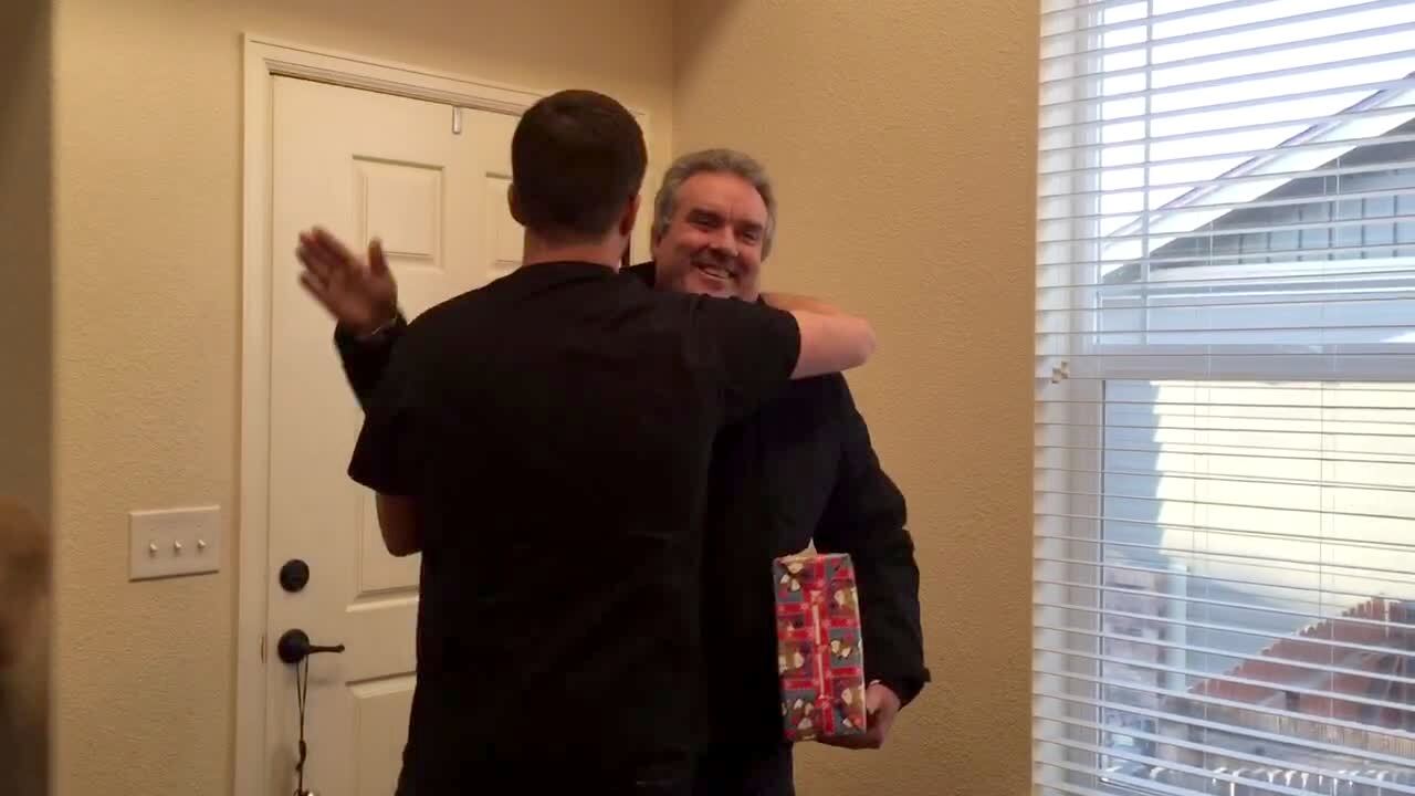 A teen girl, a woman, and a man open up Christmas presents that reveal that they're going to be grandparents and an aunt. The future grandpa man cries hard because he's so happy.