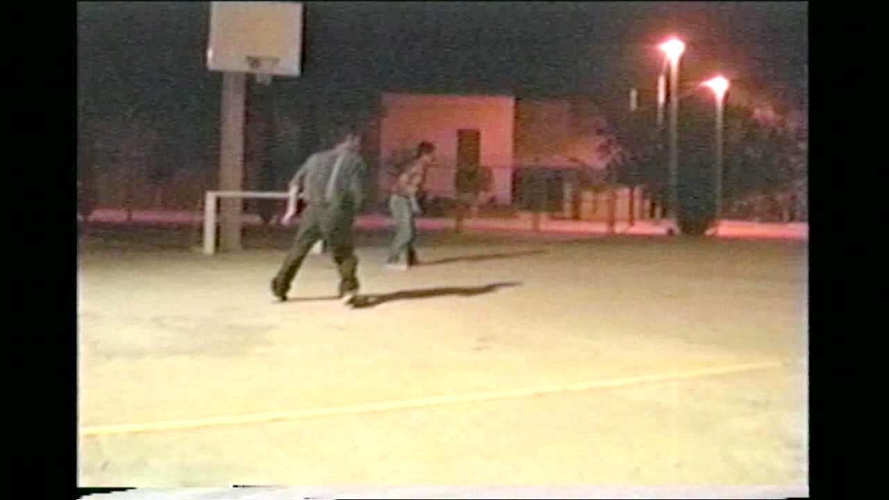 Mom on FENCE RAIL. Son joins her. FENCE BREAKS.