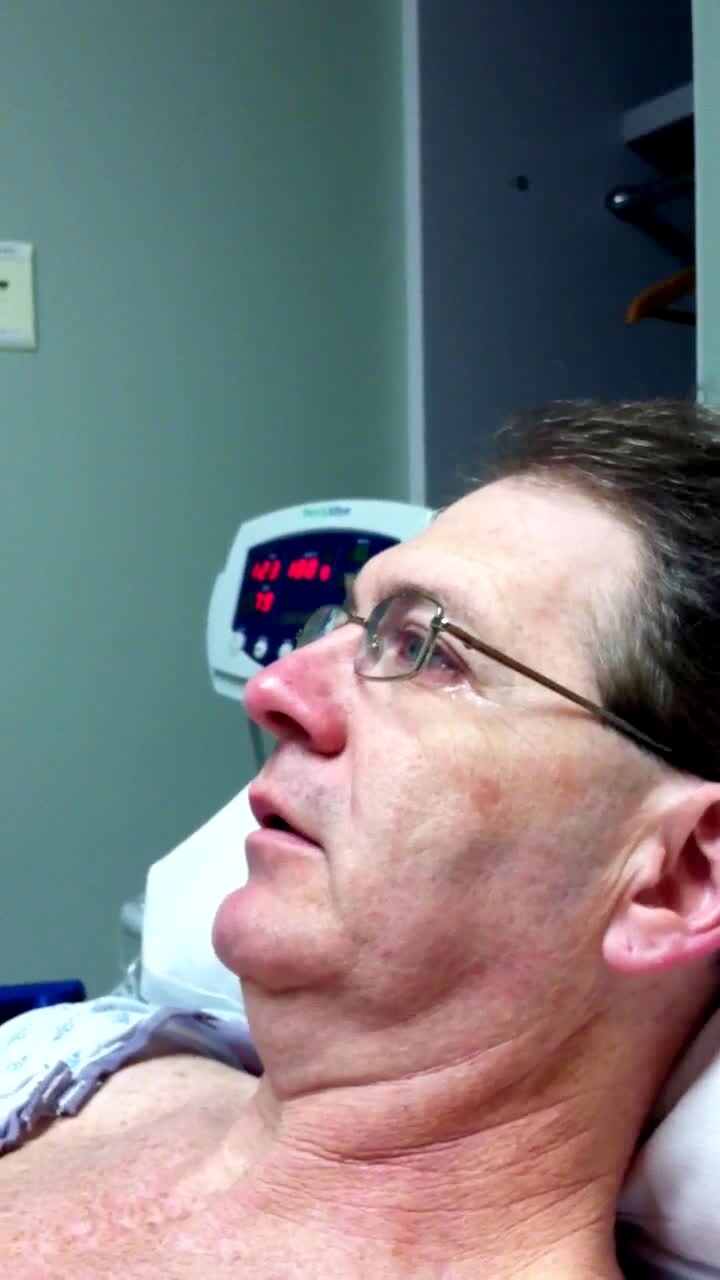 A man lying in a hospital bed after surgery complains to a woman that he always wanted a monkey and she would not let him get one.