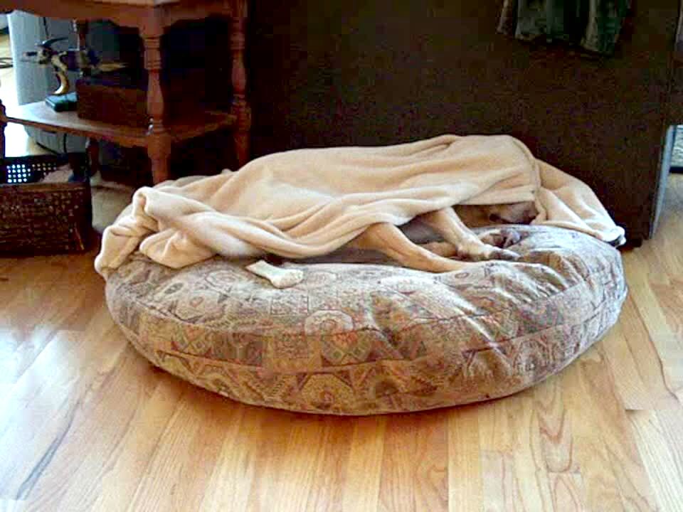 In a living room, the camera woman sneezes. A dog walks over to the other side of the room and brings her a box of tissues.