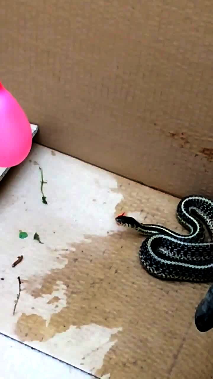 A horse eats while a woman holds a drawing of bloodshot eyes over his face outdoors. AA: Make some paper peepers.