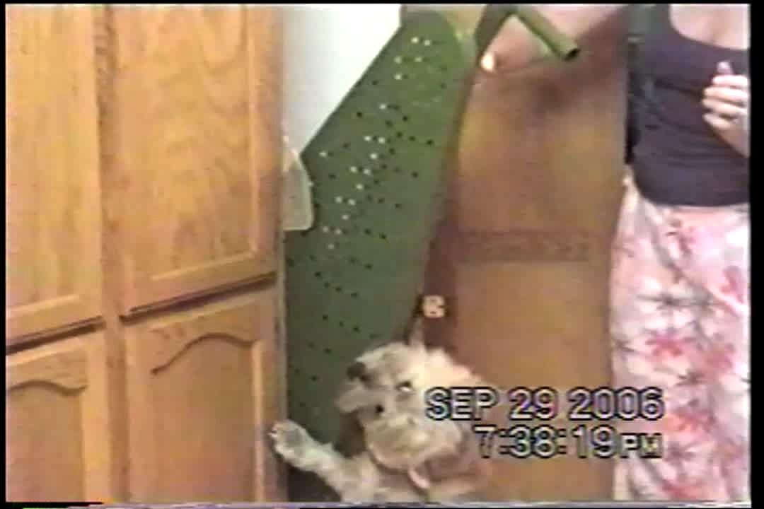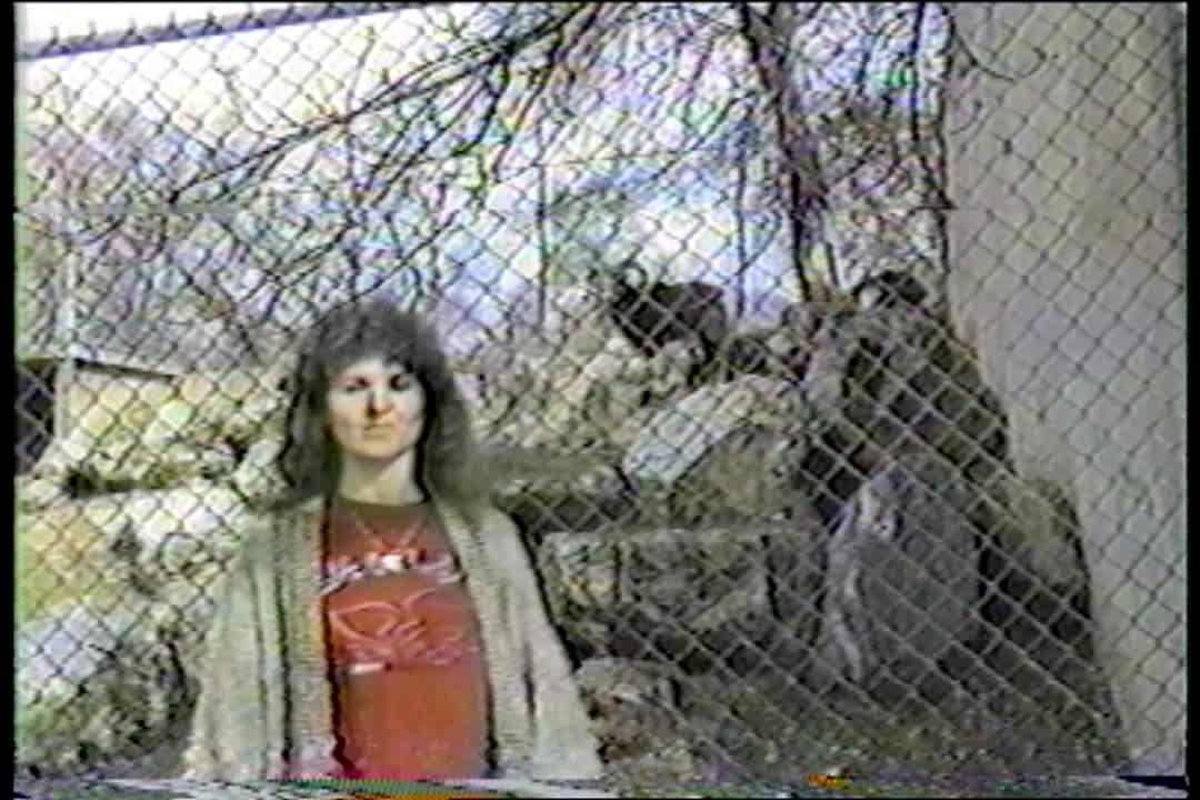 THE SIGN LANGUAGE RAM BARNYARD. Woman doing sign language in front of fence, RAM rams her from behind.