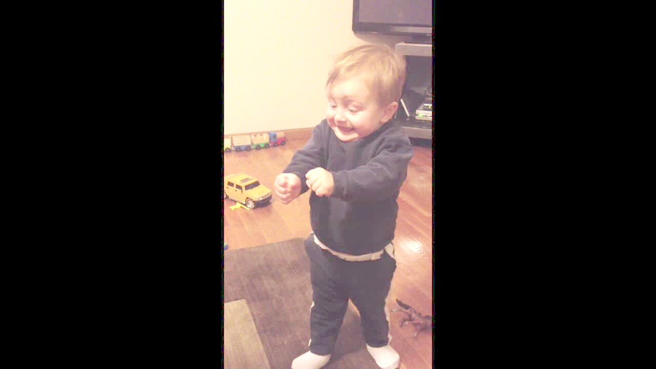 When asked "Who's the cutest baby in the world?" a baby boy responds " I am". Action at :27.