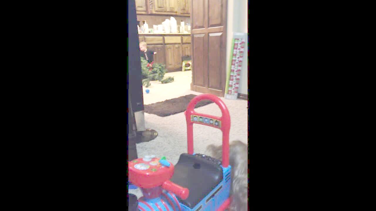 A military man surprises his three young daughters on Christmas while hiding in a Christmas gift. They open him at 1:13.