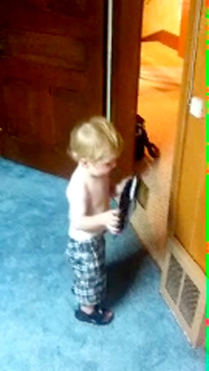 A tot boy is falling asleep in a car. His head hits the door at 0:13 and 0:33.