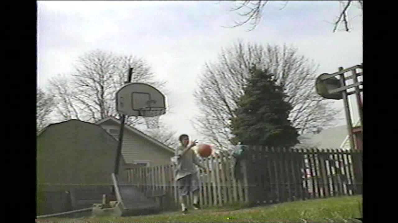 Kid hangs from basketball rim, gets hit in head by thrown ball