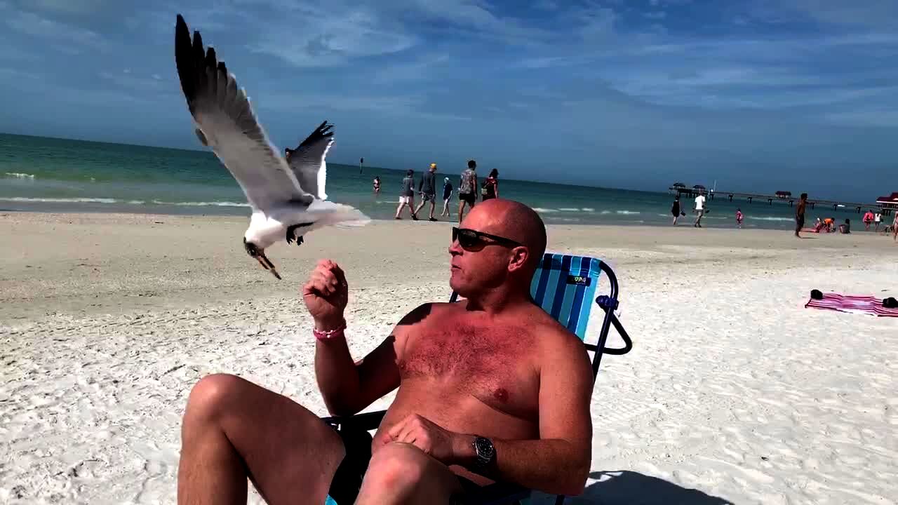 Woman Man Hvl2025 Food Eat Bird Prank Trick Attack Mean Beach Seagull