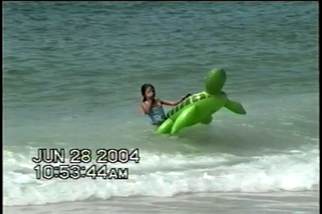 Hvlclassics Time-Stamps Little-Girls Beaches Knock-Downs Shores Waves Inflatable-Rafts