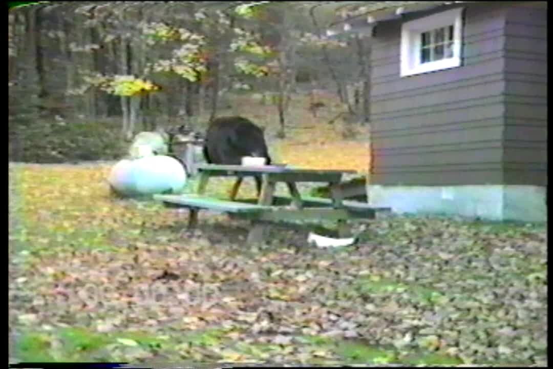 Nature Outside Yard Animal Home House Hvl2025 Outdoor Lawn Startle Surprise Grab Wildlife Woods Cabin Garbage Forest Hungry Steal Take Wild-Animal Exit Wilderness Leave Bear