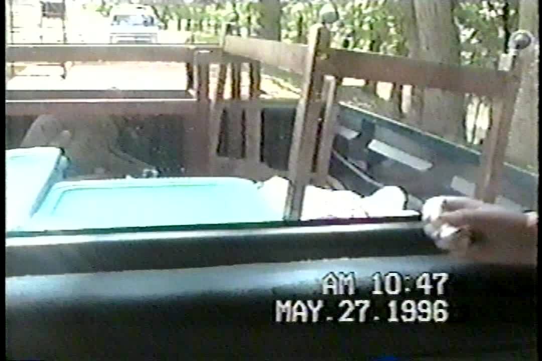 Woman in bikini sits in backyard hammock drinking a beer, fabric in hammock breaks and she falls throught it. Cameraman laughs, says "you broke the damn thing!" Recovery