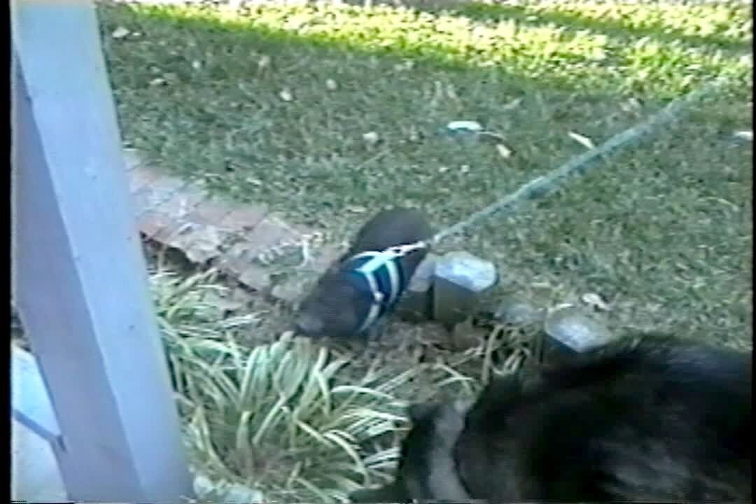 Little pig scratches butt on stump