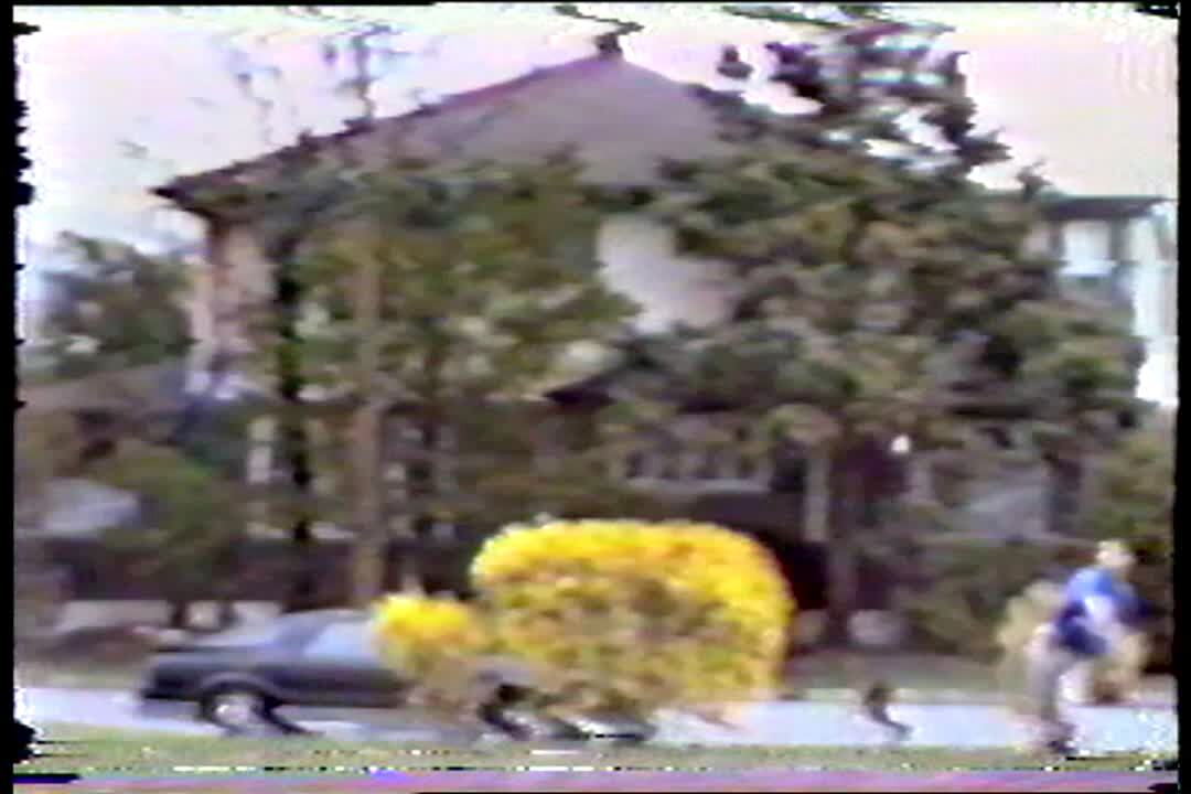 Baseball: 2 men play catch, errant throw breaks car window *Tape is shakey and tracking off a bit*