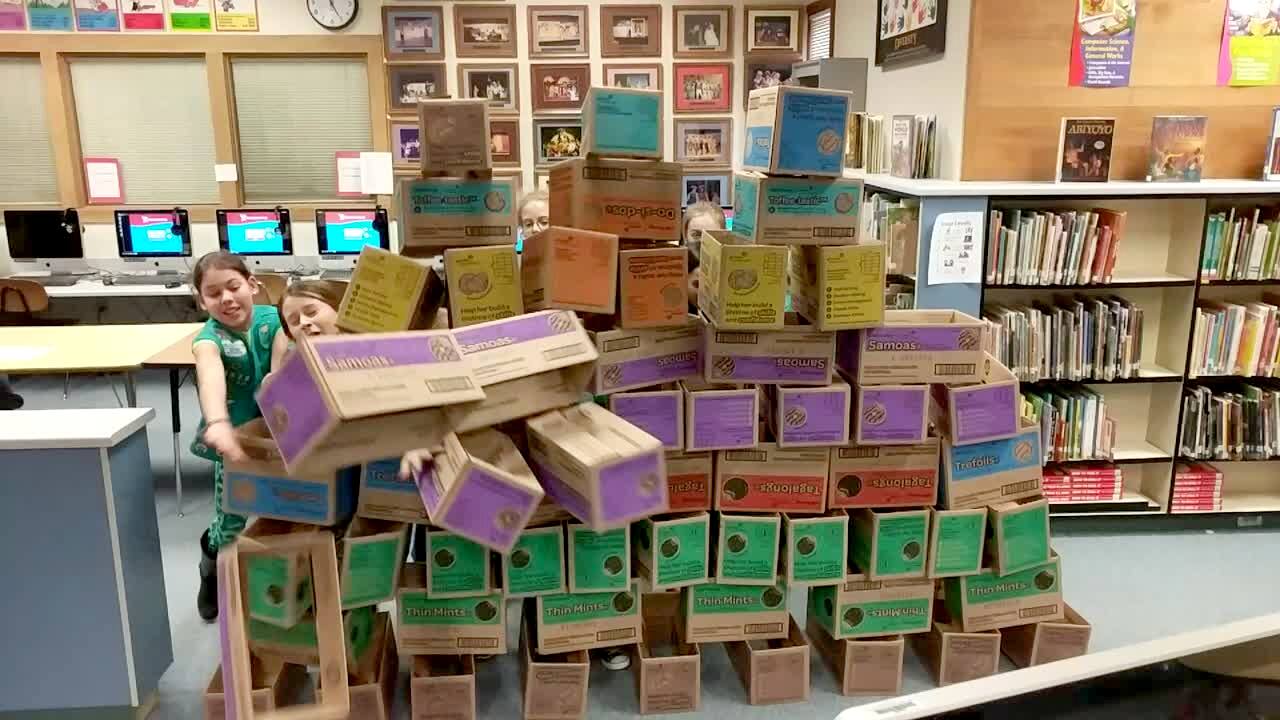 Girl Knock Hvl2022 Young Down Cookie Box Cardboard Tower Scout